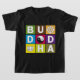 BUDDHA wird heraus in diesem bunten und ursprünglichen Buddha-Entwurf in den mehrfachen Farbblöcken buchstabiert! Buddha-Text mit drei Buddhismussymbolen, dem Dharma Rad-, YinYang Symbol und der Lotos-Blume. Wunderbare Buddhismus-Shirts und -geschenke für Buddhisten!