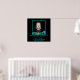 Eine glänzende silberne Buddha-Kopfstatue, die auf schwarzem Wasser mit schwebenden türkisfarbenen Lotus-Blume und grünen Lilienpolstern reflektiert. Umgeben von einem blauen, türkisfarbenen Rahmen und einem schwarzen Hintergrund. Inspiration Zitat unter dem Bild lautet: "Glück hängt nicht davon ab, was Sie haben oder wer Sie sind. Es beruht allein auf dem, was du denkst."