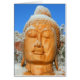 Das Gesicht eines geschnitzten Buddha mit Schnee auf Sedona, Az.