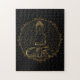 Buddha Mandala Design mit einer Darstellung eines Buddhas in Form einer Mandala in goldenen funkelnd Linien.