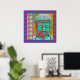 Buddha-Pop mit Patchwork-Borders in Blau und Rosa Poster