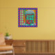 Der farbenfrohe Buddha in Pop-Kunstfarben mit mehreren gemusterten Rändern.
