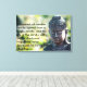 Eine Buddha-Statue und Zitat: "Tausende Kerzen können aus einer Kerze des Single angezündet werden, und das Leben der Kerze wird nicht verkürzt. Glück nimmt nie ab, indem man sie teilt."