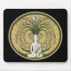 Dieser wunderbare buddhistische Entwurf zeigt Siddhartha Gautama, das unter dem Bodhi sitzt, in dem er Erleuchtung erreichte und der Buddha wurde. Breite ovale Form im Grün und in den tan Farben mit einem OM-Symbol an der Spitze des Baums. Ursprüngliche und friedliche Buddha-Shirts und -geschenke!