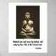 Eine Sepia-Fotografie erfasst eine ruhige Buddha-Statue, die in einer meditativen Pose vor einem dunklen Hintergrund sitzt. Die Statue ist mit aufwändigen Details beschnitten, darunter ein ruhiger Gesichtsausdruck, fließende Roben und eine traditionelle Kopfbedeckung. Die Beleuchtung wirft subtile Schatten auf die Statue, hebt deren Form hervor und schafft ein Gefühl der Ruhe.