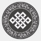 Der endlose Knoten ist ein symbolischer Knoten und eines der acht auserwählten Symbole des Buddhismus. Der endlose Knoten symbolisiert Samsara, den endlosen Kreislauf aus Leid oder Geburt, Tod und Wiedergeburt innerhalb des tibetischen Buddhismus. Dieser endlose Knoten ist von einem kreisförmigen Vintagen Blumenmuster umgeben, das Design ist in Schwarz-Weiß-Farben gehalten.