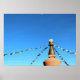 Oben buddhistische Stupa mit Gebetsfahnen, die fliegen