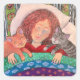 Frauen schlafen glücklich mit ihren beiden Katzen