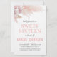 Budget Personalisieren Sie diese Boho Blush Rosa und Weiß Elegant und Modern Chic Watercolor Spring 16 . Geburtstag Geburtstag Einladung auf weißem Hintergrund mit Ihrer Nachricht und Details. Diese stilvolle Einladung beinhaltet Rose-Blume und moderne botanische Pampasgras mit niedlicher und eleganter Schriftzeichen-Typografie für ein besonderes 16.