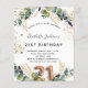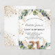Zum 21. Geburtstag Party. Weiß, mit Eukalyptusgrün und goldenen Blätter dekoriert. Golden Imitats Glitzer Spots. Personalisieren und fügen Sie Ihre Namen und Hochzeitsdetails. Schwarze und goldfarbene Buchstaben. Nummer 21 wird mit Schriftart im Ballonstil geschrieben. Zurück: weißer Hintergrund und goldene Imitate Glitzer Flecken.