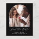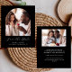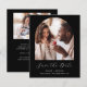 Diese schlichte, minimalistische Save the Date Karte verfügt über einen Boho-Foto-Bogen über den Worten "Save the Date" in eleganter Schrift, gefolgt von den Namen der Ehepaare, Hochzeitstag und Stadt in serifenlosen Sans-Schriftart auf schwarzem Hintergrund. Fügen Sie ein zweites, horizontales Foto und eine ausführlichere Nachricht mit zusätzlichen Informationen auf der Rückseite hinzu.