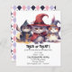 Niedliche Trick oder Treat Invitation für die ganze Familie mit den niedlichen 3 kleinen KatzenHexen mit ihren kleinen Hüten und Kappen Illustration. Sie können diese Einladung mit Ihren Daten personalisieren.