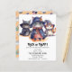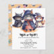 Niedliche Trick oder Treat Invitation für die ganze Familie mit den niedlichen 3 kleinen KatzenHexen mit ihren kleinen Hüten und Kappen Illustration. Sie können diese Einladung mit Ihren Daten personalisieren.
