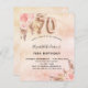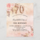 Eine Rose Gold, rot rosa rustikale Imitate metallisch aussehen Hintergrund. Die Einrichtung ist mit Rose-Gold und rosa Blumen, Rose, Pampas-Gras dekoriert. Personalisieren und fügen Sie einen Namen und Party-Details hinzu. Nummer 70 wird mit einem Schriftart im Ballonstil geschrieben.