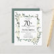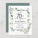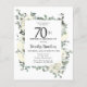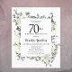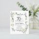 Die elegante 70. Geburtstagsfeier mit einem botanischen Rahmen aus weißen Blume und tiefgrünen Blätter. Der Name des Geburtstags wird in einem traditionellen Skripttext geschrieben. Der gesamte Text kann leicht bearbeitet werden, um genau den richtigen Feierabend zu schaffen.