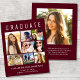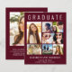 Elegante, preisfreundliche, dunkelburgundische Ankündigung mit "GRADUATE" über die Spitze in großer weißer Typografie, einer 7-Foto-Collage und ihrem Namen, Klassenjahr und Schule in moderner weißer Typografie. Fügen Sie auf der Rückseite ein zusätzliches Foto und eine benutzerdefinierte Meldung hinzu.