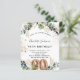 Für eine 90. Geburtstagsparty. Weiß, mit Eukalyptusgrün und goldenen Blätter dekoriert. Golden Imitats Glitzer Spots. Personalisieren und fügen Sie Ihre Namen und Hochzeitsdetails. Schwarze und goldfarbene Buchstaben. Nummer 90 ist mit Schriftart im Ballonstil geschrieben. Zurück: weißer Hintergrund und goldene Imitate Glitzer Flecken.