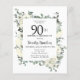 Die elegante 90. Geburtstagsfeier mit einem botanischen Rahmen aus weißen Blume und tiefgrünen Blätter. Der Name des Geburtstags wird in einem traditionellen Skripttext geschrieben. Der gesamte Text kann leicht bearbeitet werden, um genau den richtigen Feierabend zu schaffen.