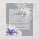 Erschwinglicher rustikaler tropischer Hibiskus und Foliage Hochzeitseinladung | NEU! Erschwingliche Lightweight Wedding Einladungen - eine lila lila tropische Hibiskus-Blume und eine Farnblattverzierung und ein Splittländer-Philodendron-Blatt-Verzierung in schrägen Ecken beides, in glänzendem Gold gekrönt auf einem mittelgrauen Hintergrund mit einem schieren weißen Overlay, um den Text einfach zu lesen und dennoch durch das Design zeigen - schöne handgeschriebene Kalligrafie - Originaldesign von ©WhimsicalArtwork™ für den BarefootBride ™. Dies ist Teil unserer Hochzeitskollektion Watercolor Tropical Hibiskus sowie der Einladungen zum Kinderduschen, Geburtstag und Weihnachten. Für Fragen oder Hilfe wenden Sie sich bitte an Designer indy.designer@yahoo.com.