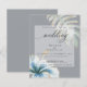 Erschwinglicher rustikaler tropischer Hibiskus und Foliage Hochzeitseinladung | NEU! Erschwingliche Lightweight Wedding Invitations - eine Single staubige blaue tropische Hibiskus-Blume und ein geteiltes Blatt-Philodendron-Blatt, das in glänzenden goldfarbenen Ecken gekleidet ist, auf einem mittelgrauen Hintergrund mit einem schlichten weißen Overlay, um den Text leicht zu lesen und dennoch das Design durch - schöne handgeschriebene Kalligrafie - leicht zu gestalten - Original Whité imsicalArtwork™ für den BarefootBride ™. Dies ist Teil unserer Hochzeitskollektion Watercolor Tropical Hibiskus sowie der Einladungen zum Kinderduschen, Geburtstag und Weihnachten. Für Fragen oder Hilfe wenden Sie sich bitte an Designer indy.designer@yahoo.com.