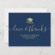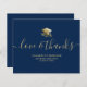 Senden Sie eine moderne, benutzerdefinierte Abschluss Dankeschön-Karte an Ihre Familie und Freunde mit einer Abbildung einer Goldabschlusskappe und Diplom auf der Vorderseite mit einem modernen Skript, das lautet: "Liebe & Dank" in Imitaten goldene Typografie mit Ihrem Namen, Schule, und Klasse/Jahr unten auf einem marinebasierten Hintergrund. Die Rückseite der Karte enthält eine Nachricht, die Sie personalisieren oder löschen können. Designed by artist ©Susan Coffey.