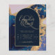 Budget Agate Blue Gold Wedding Einladung QR Code U