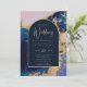 Budget Agate Blue Gold Wedding Einladung QR Code U