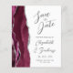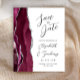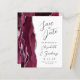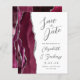 Der links Rand dieser eleganten modernen Hochzeit speichern Sie die Dattelkarte mit einem bordeauxroten Aquarellstreifen, der mit Imitaten silbernen Glitzer bestickt ist. Der individuell anpassbare Text kombiniert handgeschriebene Holzkohle, Kupferplatte und kursiv Schriftart auf weißem Hintergrund. Auf der Rückseite ist ein passendes bordeauxfarbenes und silberfarbenes Design zu sehen.