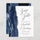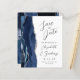 Der links Rand dieser eleganten modernen Hochzeit speichern Sie die Dattelkarte mit einem marineblau Aquarellstreifen, der mit Imitaten silbernen Glitzer bestickt ist. Der individuell anpassbare Text kombiniert handgeschriebene Holzkohle, Kupferplatte und kursiv Schriftart auf weißem Hintergrund. Auf der Rückseite ist ein passendes Schiff- und Silber-Agate-Design zu sehen.