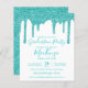 BUDGET Aqua Aquamarin Sparkle Glitzer Tropfen Graduation Party Einladung mit Ihrem Monogramm und Namen mit unseren trendigen Imitate aquamarin Glitzer Tropfen auf einem schicken weißen Hintergrund. Sie tauchen in Luxus ein, also zeig es dir! Perfekt für Ihre Glitzer Ästhetik! **Unser BUDGET-Papier ist kleiner und zarter, aber trotzdem schön!** Wenn Sie Hilfe oder passende Artikel benötigen, kontaktieren Sie uns bitte unter cedarandstring@gmail.com.