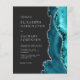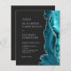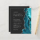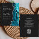 Die rechte Seite dieser eleganten, modernen Hochzeitseinladung ist mit einem aquamarin blauen Aquarellrahmen besetzt, der mit Imitaten silbernen Glitzer bestickt ist. Der anpassbare Text kombiniert silbergraue Serif-, Copperplate- und kursiv-Schriftart auf schwarzem Schieferboden. Die Rückseite bietet Platz für Hochzeitsdetails auf einem soliden schwarzen Hintergrund, zusammen mit einem QR-Code können Gäste scannen, um Ihre Website und UAWG, die die Kosten für den Druck und Versand separater RSVP-Karten rette.