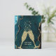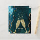 Zwei goldene Champagnergläser klopfen zusammen in einem Toast, der das Neujahr und den Umzug in eine neue Zuhause feiert. Vor unserer Bekanntgabe der Haushaltskarte steht ein dramatischer aquamariner und goldener Hintergrundehintergrund mit dem Text "New Year New Zuhause" und "The Johnsons have move" (Die Johnsons sind umgezogen). Beide Textblöcke und der gesamte Text auf der Rückseite der Karte können auf der Vorlage Personalisieren leicht überarbeitet werden.