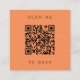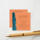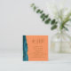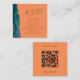 Die links Seite dieser eleganten, modernen Hochzeitswebseite bietet eine aquamarine blaue Aquarellgrenze mit vergoldetem Imitat-Glitzer. Der Titel erscheint in einem braunen Schriftzeichen, mit unten anpassbarem Text in Copperplate-Schriftart auf einer Mandarine orangefarbenem Hintergrund. Geben Sie Ihren URL-Code Ihrer Hochzeitsseite ein, um einen QR-Code zu generieren, um das Beispiel auf der Rückseite zu ersetzen, gerahmt durch die Worte "scanne mich in UAWG".