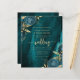Diese elegante Hochzeitseinladung besticht durch aquamarine Blumensträuße mit einem Set aus goldenen Imitaten, die in zwei Ecken auf einem Hintergrund mit aquamarinem Aquarellbild stehen. Der anpassbare Text kombiniert goldfarbene Serif-, Kursivschrift- und Handschriftzeichen-Schriftart. Die Rückseite bietet Platz für Hochzeitsdetails, zusammen mit einem QR-Code können Gäste scannen, um Ihre Website und UAWG zu besuchen, was die Kosten für den Druck und Versand separater RSVP-Karten rette.