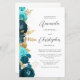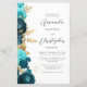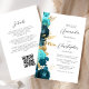 Die links Seite dieses eleganten, modernen Hochzeitseinladens besticht durch eine aquamarine und aqua-blumengeschmückte Grenze mit goldenen Imitaten. Der benutzerdefinierbare Text kombiniert das kohlegraue Skript und setzt serifenlose Schriftart auf weißem Hintergrund. Die Rückseite bietet Platz für Hochzeitsdetails auf einem soliden, weißen Hintergrund, zusammen mit einem QR-Code können Gäste scannen, um Ihre Website und UAWG zu besuchen, was die Kosten für den Druck und Versand separater RSVP-Karten rette.