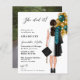 Budget Grad Girl mit Aquamarinen und Gold Balloons Custom Year Modernes Minimalistisches Foto Sie tat es Abschluss Einladung