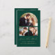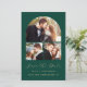 Diese schlichte, minimalistische Save the Date Karte verfügt über einen Kollagenbogen aus Foto mit einem horizontalen Foto oben und zwei quadratischen Fotos unten. Die Worte "Save the Date" erscheinen in elegantem, goldfarbenem Handschriftenschreiben, gefolgt von den Namen des Paares, dem Hochzeitstag und der Stadt in Sans Serif Schriftart auf einem smaragdgrünen Hintergrund. Fügen Sie der Rückseite ein viertes, horizontales Foto hinzu, zusammen mit einer detaillierteren Meldung mit zusätzlichen Informationen.