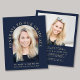 Elegante und preisgünstige dunkelblaue Graduiertenparty mit dem Foto des Absolventen in einem Bogen-Rahmen, "Glückwunschs To Our Graduate" in Goldserf-Typografie und ihrem Namen, Schuljahr und Klassenjahr in Goldtypografie. Fügen Sie auf der Rückseite ein zusätzliches Foto hinzu und personalisieren Sie Ihre Party-Details.