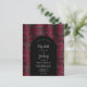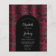 Dieses elegante Design besticht durch ein stimmungsvolles Hintergrundbild Vintager Imitate mit samtenen Blumenmotiven in Bordeaux und Schwarz. Personalisieren Sie es mit den Namen der Braut und des Bräutigams in silbergrauer Kalligraphie-Schrift und dem verbleibenden Text in einer Kombination aus Sans Serif, Copperplate und Kursivschrift auf einer schwarzen Bogenform. Die Rückseite bietet Platz für Hochzeitsdetails auf einem soliden schwarzen Hintergrund, zusammen mit einem QR-Code können Gäste scannen, um Ihre Website und UAWG.