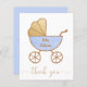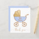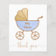 Vielen Dank für Ihr Baby, dass Sie die Gäste mit diesem niedlichen und preiswerten Dankeschön duschen, das eine pastellblaue und goldene Aquarellfarbe einer Retro-Babykutsche aufweist und in einem stilvollen Drehbuch geschrieben wurde, das mit dem Gold der Kutsche abgestimmt ist. Auf der Vorderseite können Sie den Text auf der Kutsche anpassen (Babyname, "Danke", "It's a Boy!" oder leer verlassen); auf der Rückseite können Sie Ihre Danksagung und Unterschrift leicht personalisieren.