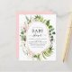 Budget Eukalyptus Greenery Botanische Aquarellfarben und Rose Gold - Blush Pink Geometric Spring Baby Dusche Einladungen auf weißem Hintergrund - beinhaltet schöne und elegante Schrift Typografie mit modernen botanischen Blätter und Grün für die besondere Mutter zu sein zu feiern.