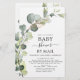 Budget Eukalyptus Greenery Sukkulent Botanische Wasserfarbe Geschlechtsneutraler Baby Boy oder Baby Girl Baby Shower by Mail Einladungen auf weißem Hintergrund - beinhaltet schöne und elegante Drehtypografie mit modernen botanischen Blätter und Grün für die besondere Mutter zu feiern.