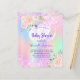 Ein Regenbogen, holografisch gefärbter Hintergrund in lila, pink, mint grün, Rose gold. Die Einrichtung besteht aus Glitzer, Glitzern und weißen Ballons, die mit rosa Imitat in Rosa verziert sind. Personalisieren und fügen Sie einen Namen und Party-Details hinzu. Der Name wird mit einem handgeschriebenen Stilskript geschrieben, lila Buchstaben.