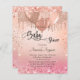 Für eine elegante Babydusche. Eine Rose Gold und rot rosa Farbverlauf Hintergrund. Dekoriert mit Rose Gold, rosa Imitat Glitzer Tropfen, Farbe Tropfen Look und Ballons. Personalisieren und fügen Sie den Namen der Braut zu sein und Party Details. Der Name und der Text: Baby Shower wird mit einem handgeschriebenen Stift geschrieben