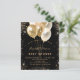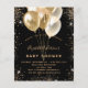Für eine elegante Babydusche, geschlechtsneutral. Ein stilvoller schwarzer Hintergrund. Mit dunklem vergoldeten Glitzer, Glitzern und Ballons dekoriert. Personalisieren und fügen Sie einen Namen, Party-Details. Der Name wird mit einem handgeschriebenen Stilskript geschrieben