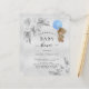 Für eine moderne Babydusche im bohischen Stil. Ein Imitat silber aussehender Hintergrund. Die Einrichtung besteht aus nicht farbigen Rose, Pampas-Gras und einem Teddybär mit einem hellblauen Ballon. Personalisieren und fügen Sie einen Namen und Party-Details hinzu.