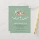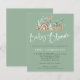 Baby in Bloom Boho Sage Baby Dusche einladen. Ein Preis SMALLER 4,5" x 5,6" Alternative. Erhältlich in einem SEMI GLOSS 110lb CARD STOCK, der die Standardoption ist (empfohlen für Einladungen, ähnlich der Dicke einer Postkarte), ODER einem SATIN FINISH 80 lb THINNER PAPER STOCK (besser für dünne Gehäuse). Boho Stil Illustration des Regals mit Pflanze und Babyspielzeug und stilvolle informelle Set-Skript für Header Baby in Bloom. Gender neutral, mit schlinggrünem Hintergrund und weißer Typografie für die Position und koordiniert Salbei grün auf der anderen Seite. Sie können die Erholung des Textes ganz einfach an Ihre eigenen Anforderungen anpassen und die Hintergrundfarben ändern, wenn Sie es wünschen.