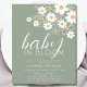Planen Sie eine geschlechtsneutrale Babydusche? Diese niedliche Einladung ist mit handgezeichnet Gänseblümchen auf grünem Hintergrund dekoriert. Es sagt Baby in Bloom in stilvoller Typografie. Einfach anpassbar. Original Zeichnend © Michele Davies.