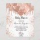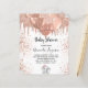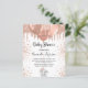 Für eine Babydusche, Feiern eines kleinen Mädchens. Ein schick weißer Hintergrund. Dekoriert mit Rose Gold, rosa Imitat Glitzer Tropfen, Farbe Tropfen aussehen, Ballons und ein niedliches kleines Elefantenmädchen. Personalisieren und fügen Sie den Namen der Mutter zu sein Name und Party Details. Der Name und der Text: Baby Shower wird mit einem handgeschriebenen Stift geschrieben