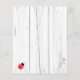 Ein rustikal weißer Holzboden. Ein geometrischer Rahmen mit goldenem Rahmen und ein niedlicher, roter Ladybug. Mit dem Text: Baby Shower und der Name der Mutter auf der Vorderseite geschrieben mit einem modernen handgeschriebenen Stil Skript. Schwarze Buchstaben. Geschlechterneutral.